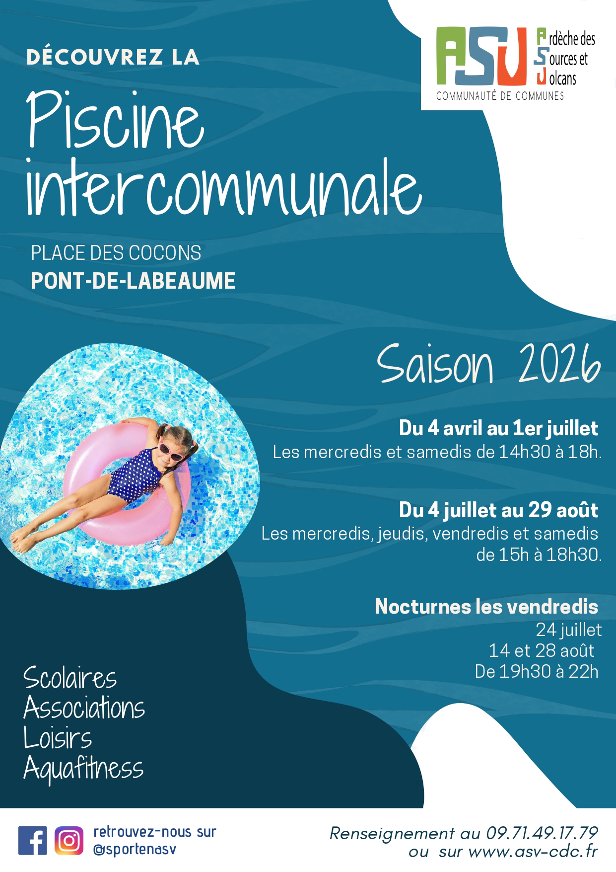 - Le samedi 4 avril 2026 : PISCINE INTERCOMMUNALE
