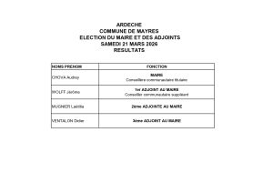 - Résultats de l’élection du maire et des adjoints le 21 mars 2026